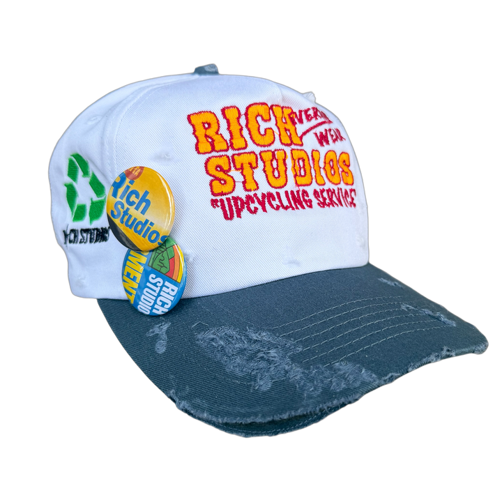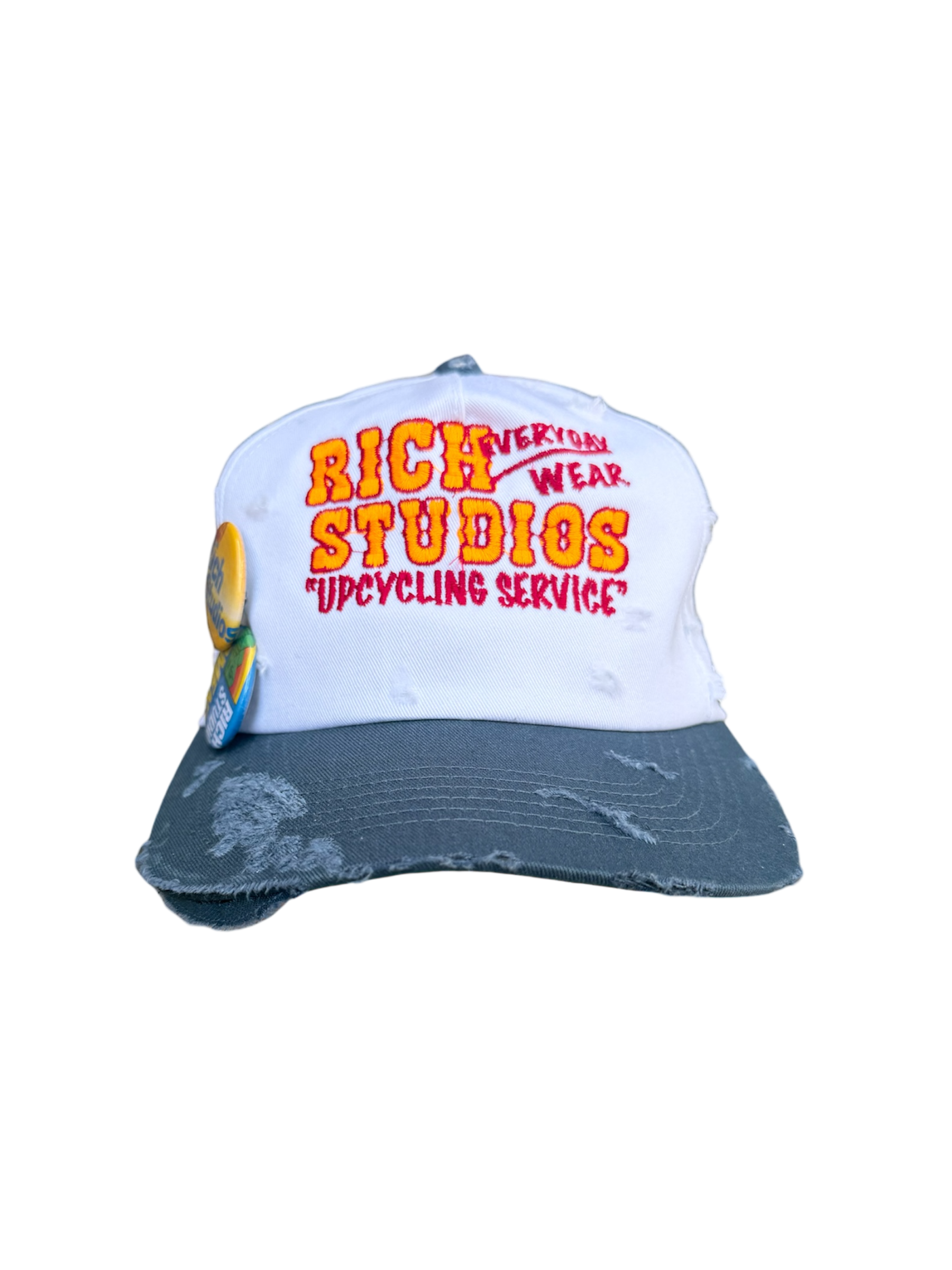 Details: Vintage style cut 5 panel hat, Cut & Sew, embroidery, distressed, comes with 2 pins