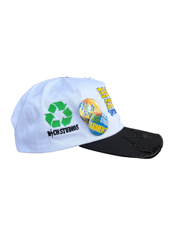Details: Vintage style cut 5 panel hat, Cut & Sew, embroidery, distressed, comes with 2 pins