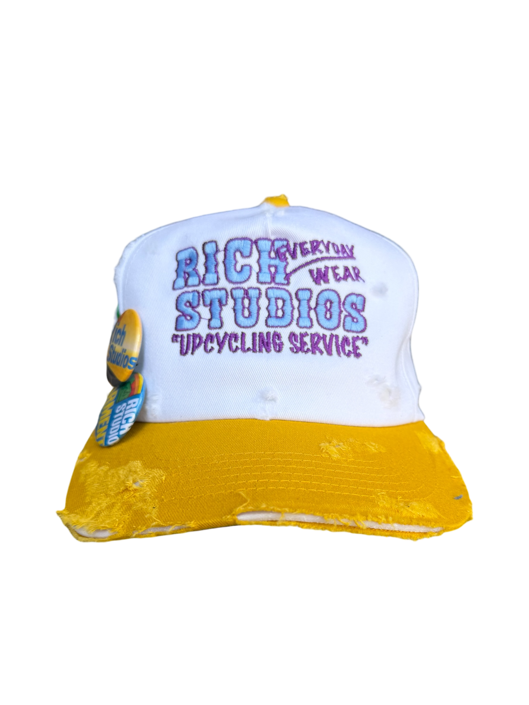 Details: Vintage style cut 5 panel hat, Cut & Sew, embroidery, distressed, comes with 2 pins