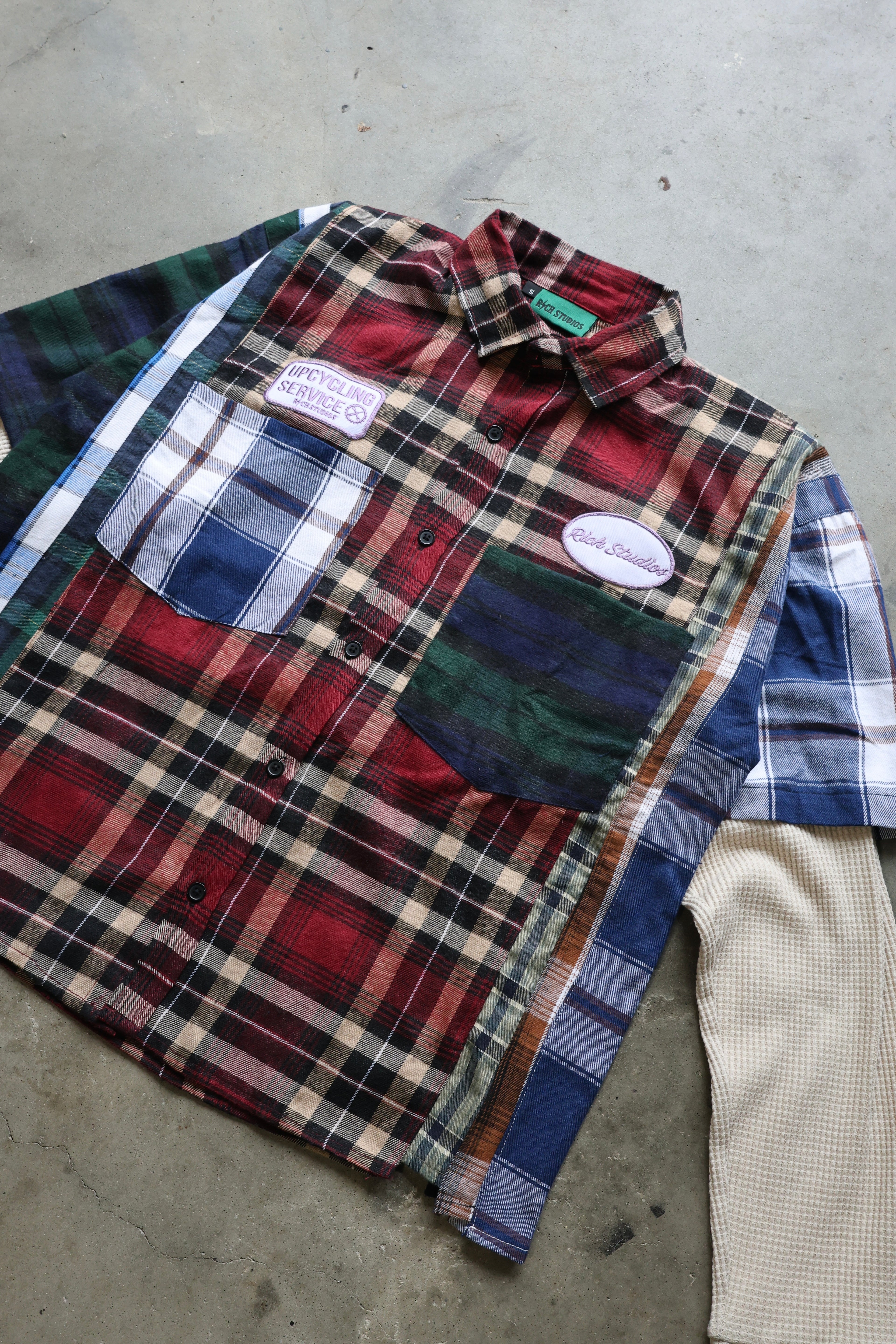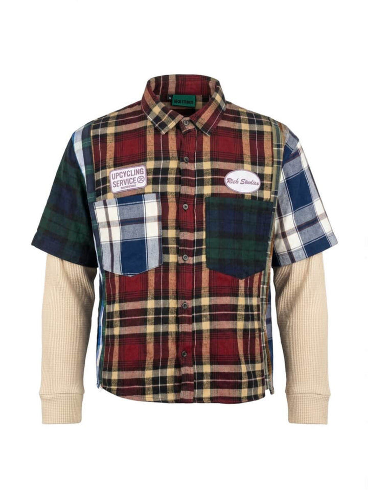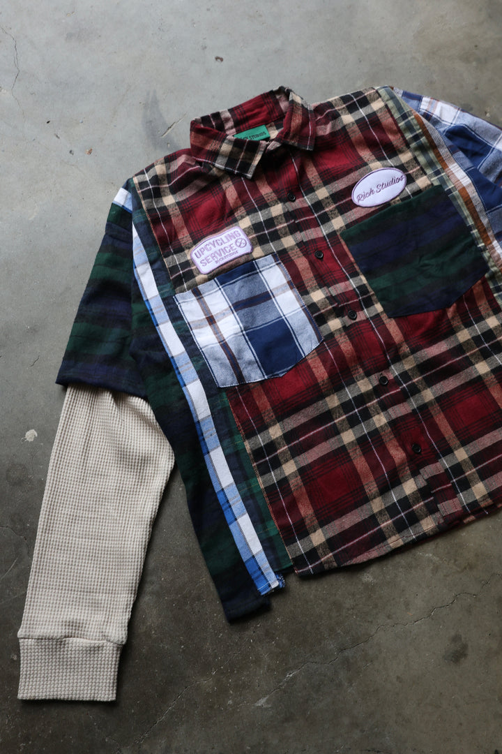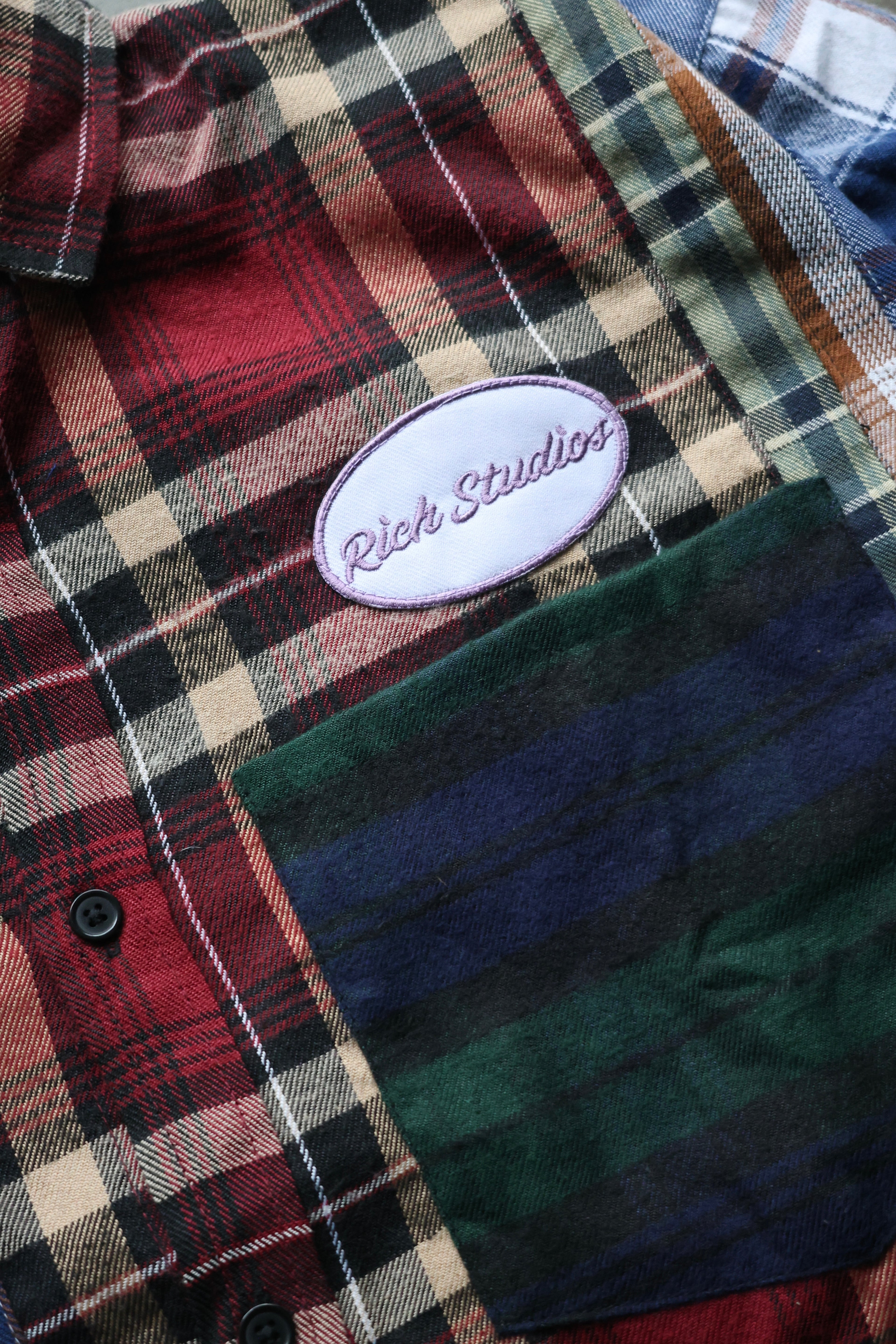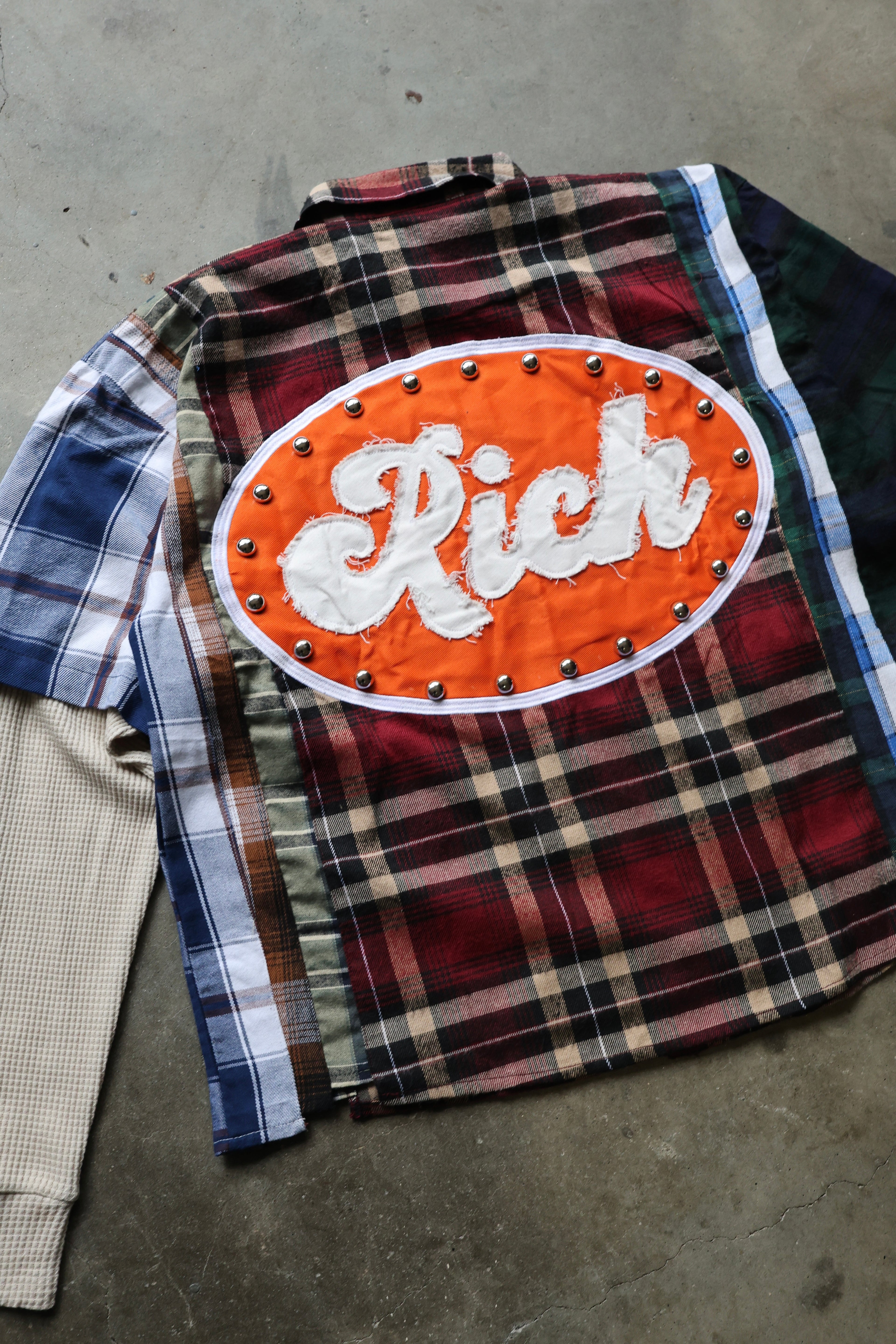 Details: Cut & Sew, 6 panel flannel, Rich Studios design, embroidered patches, metal studding